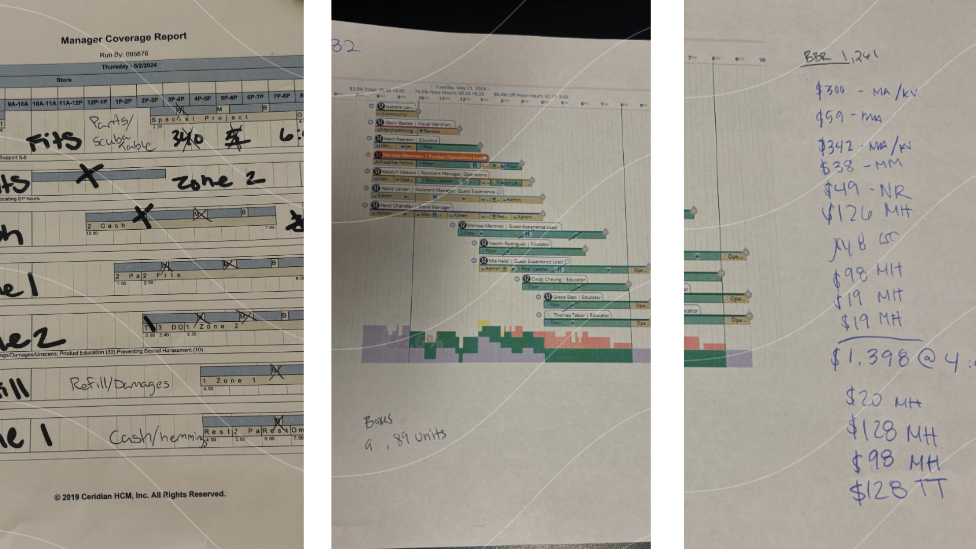 However, store operations rely heavily on manual processes. Daily goals are communicated through a physical check-in board completed each morning. Performance metrics including sensitive data are printed and distributed on paper, increasing the risk of misplaced information. Team zoning is assigned verbally at the start of each shift, and break schedules are coordinated manually throughout the day.